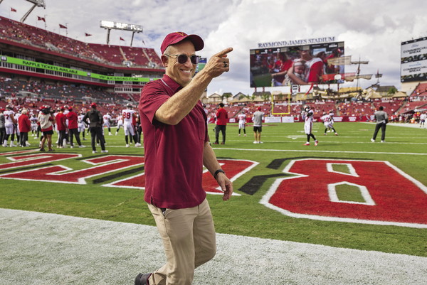 Während 63.000 eingefleischte Fans zum Saisoneröffnungsspiel der Tampa Bay Buccaneers gegen die Washington Commanders ins Raymond James Stadium in Tampa, Florida, strömen, spürt Milliardär Josh Harris, Washingtons neuer Eigentümer, die Hitze. An diesem Septembernachmittag hat es 32 Grad, und der Schweiß dringt durch sein kastanienbraunes Poloshirt. Er geht am Spielfeldrand auf und ab, schüttelt Hände, posiert für Fotos und signiert Hüte der Commanders-Fans, die für eine erfolgreiche Saison beten (die letzte hatte das Team 2016).