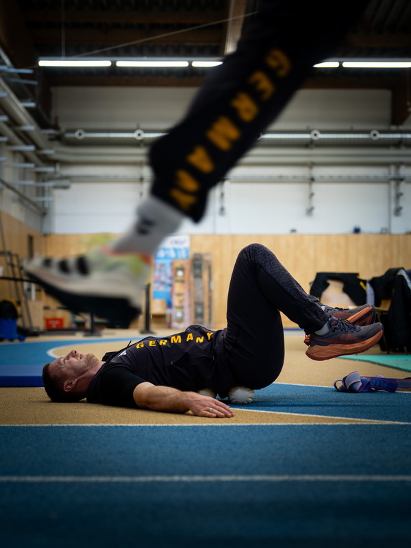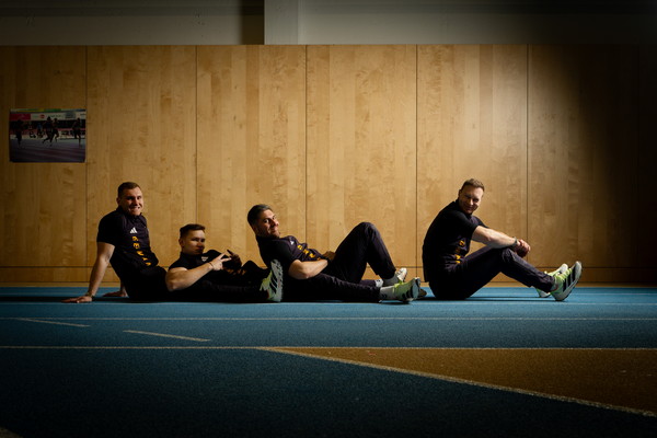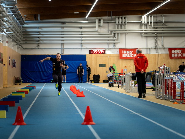In der Sporthalle hinter den Klettertürmen in der Innsbrucker Matthias-Schmid-Straße nimmt in der Zwischenzeit das Training der Bob-Olympiamannschaft langsam Fahrt auf. Felix Straub ist der schnellste Läufer im Team. Er nimmt die hinterste Position in der Mitte bzw. am Ende des Viererbobs ein, hakt das Kabel des sogenannten „1080 Sprint“-Geräts mit einem Karabiner an einen Stoffgurt, den er um die Hüften trägt, und sprintet explosionsartig los. Die durchschnittlichen Start- und Endgeschwindigkeiten, also die Geschwindigkeit beim Einstieg des vierten Mannes, liegen bei 45 km/h, „in Cortina sogar bei 47 km/h“, sagt Gerd Leopold. Die Kabelwinde surrt in hohem Ton auf. Das in Schweden entwickelte Gerät wird im Widerstands- und Geschwindigkeitstraining eingesetzt, erklärt er. Dabei kann die Zugkraft unterschiedlich eingestellt werden. „Da der Bob rund 210 kg schwer ist, teilt man das Gewicht etwa durch vier, auf die Anschieber und den Piloten“, erklärt der Trainer die individuellen Last- und Geschwindigkeitseinstellungen. Immer wieder blickt er auf die Anzeige des „1080“ – „Felix ist in Bestform“, sagt er zufrieden, „alle im Team bringen aktuell Höchstleistungen.“ Denn eines müsse hier auch klar sein, so Leopold bestimmt: „Wer mit Francesco als Pilot antritt, weiß, dass er um Gold fährt und nicht um den sechsten Platz.“ Friedrich ist, da ist Leopold ganz eindeutig, „der absolute Leader. Und den Besten macht aus, dass er in der Stunde, wo er gefordert ist, abliefert. Viele können samstags liefern, aber sonntags, wenn alle zuschauen, können sie nichts mehr. Du musst bringen. Das allein ist die Eigenschaft, die du als Dominator, wie Francesco einer ist, hast. Ansonsten bist du nicht so lange an der Weltspitze.“