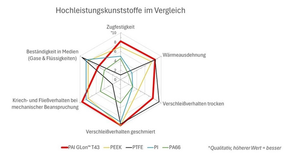 Mechanisch behalten Kunststoffe auf Torlon®-Basis ihre Festigkeit und Steifigkeit bis etwa 260°C und zeigen eine extrem niedrige thermische Längenausdehnung; Komponenten aus KetaSpire-PEEK® behalten ihre Maßstabilität im Dauerbetrieb bis etwa 240°C, was insbesondere bei Lager- und Dichtungsstellen wichtig ist, die nur geringe Spaltänderungen über den gesamten Temperaturbereich aufweisen dürfen.