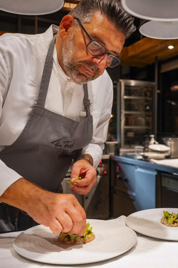 Das Restaurant „The First“, das zweite Sterne-Restaurant im Resort, liegt mit dem „Masters“ unter einem Dach – nur 20 Meter trennen die beiden, in Stil und Konzept völlig unterschiedlichen, kulinarischen Welten.